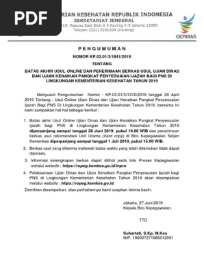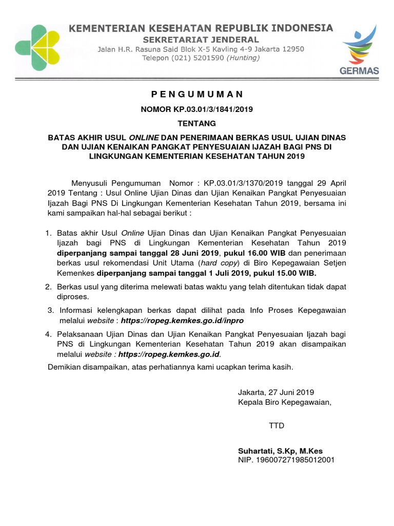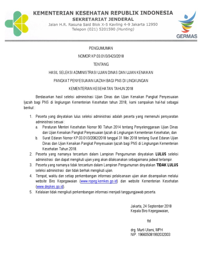 Pengumuman kelulusan skb cpns kemhan ta 2019 jumat, 30 oktober 2020. Bagi asn / pns yang sedang mengajukan kenaikan pangkat dan ingin melakukan cek perjalanan proses sk kenaikan pangkat bisa dilakukan dengan menggunakan aplikasi my spak bkn. Yuk jangan lupa di share,like dan comment, supaya tim medsos ropeg tetap semangat untuk membagikan informasi terbaru seputar pengelolaan kepegawaian di biro. Juknis kenaikan pangkat anumerta karena meninggal duniafull description. Kesehatan, departemen kesehatan, indonesia, kementerian kesehatan indonesia, kepegawaian, biro kepegawaian, ropeg, simka, simpeg, cpns, kenaikan pangkat, jabatan.